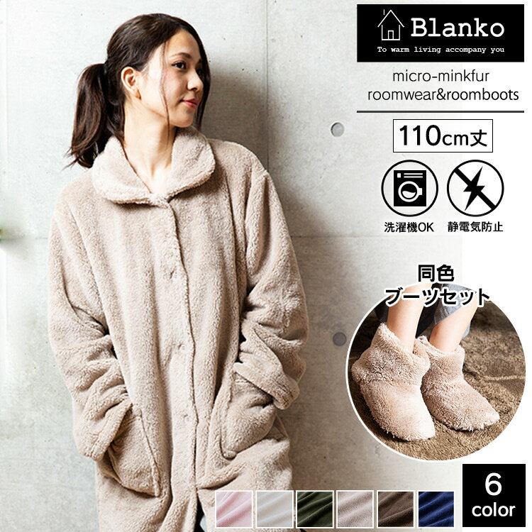 ルームウェア 着る毛布 マイクロミンクファー 110cm丈 ルームブーツ セット洗える ロング ガウンケット もこもこ ふわもこ 毛布 ルームシューズ Mサイズ Lサイズ あったか スリッパ 北欧【D】