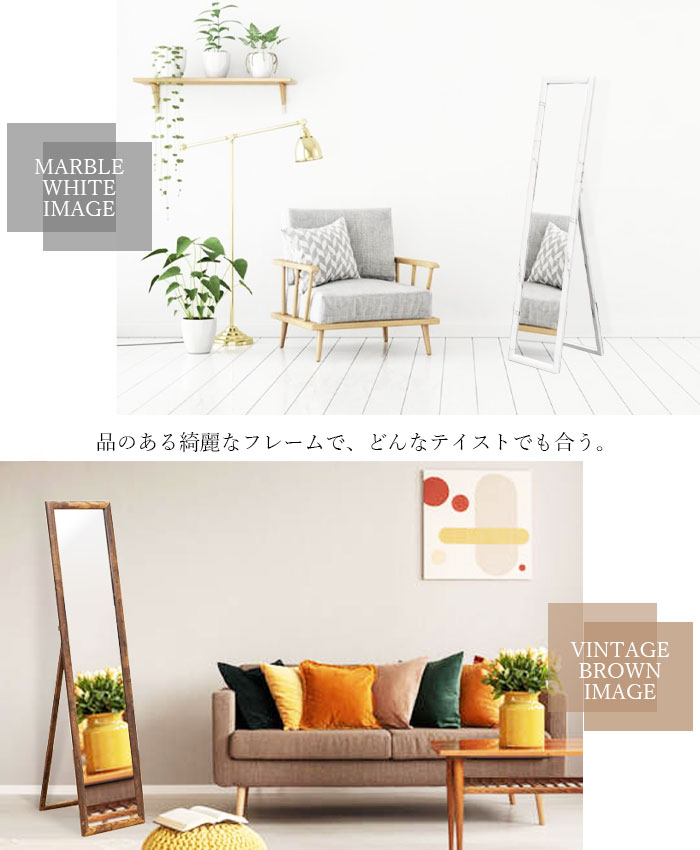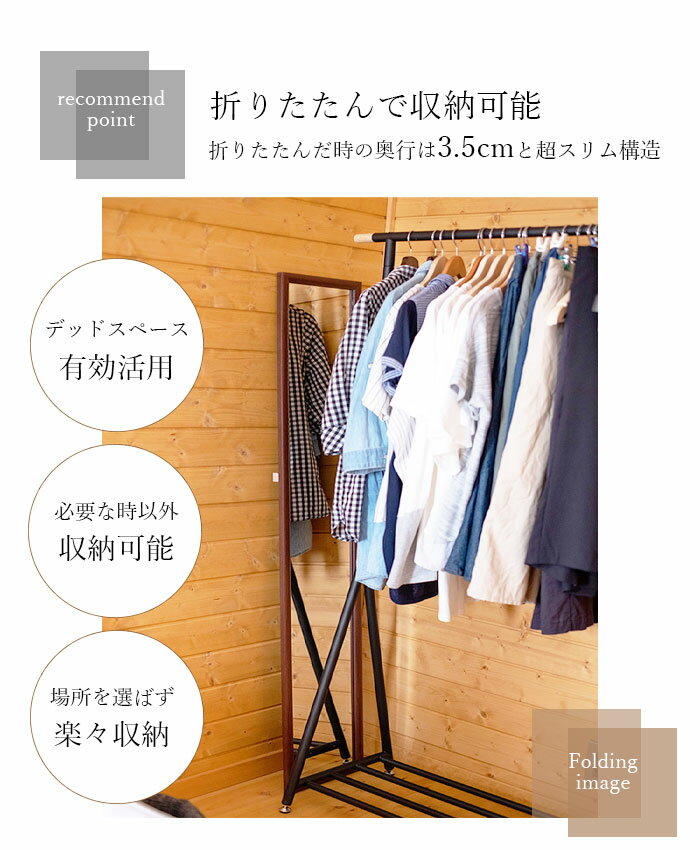 商品詳細 サイズ サイズ:幅35×奥行42×高さ148cm 折りたたみ時:厚さ3.5×高さ150cm ミラーサイズ:幅28×高さ143×厚さ0.3cm 重量:6.2kg 仕様 素材:プリント紙化粧繊維板 鏡:飛散防止フィルム貼り パッケージ:個別箱 ※完成品 商品説明 側面の金具で脚を固定するだけで好きな場所に設置して使えます。